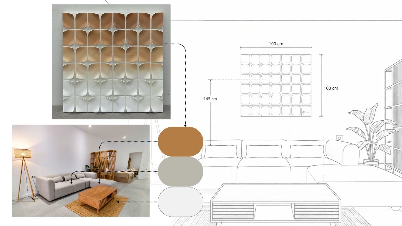 - La composition s’intègre dans le rythme de l’espace, apportant profondeur, équilibre et une présence visuelle maîtrisée.